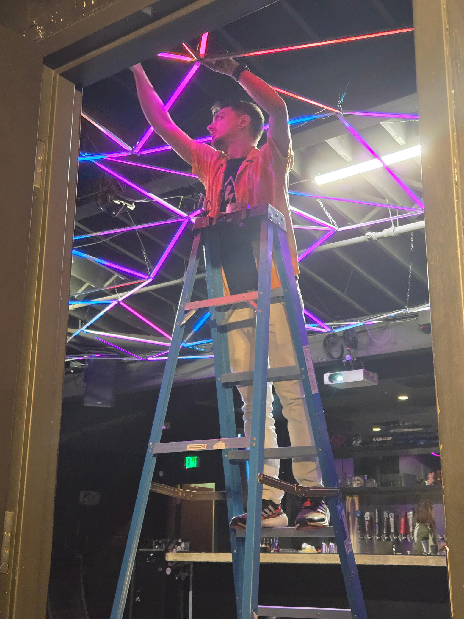 Biggest project to date. Designed, built, and installed custom lighting for The Space Bar in downtown Eugene, OR. Worked with the owner to brainstorm ideas based on his vision. I then took those ideas and designed a custom space and chose parts for order. Finally, I spearheaded assembling the individual fixtures and tackled getting the whole thing hung, wired, and programmed.Located at: